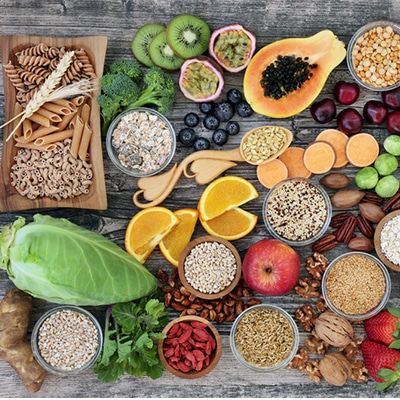 Get an array of colorful fruits and veggies on your plate. The more colorful, the better because you will be getting more of those beneficial polyphenols which will help with all sorts of gut issues! Cook with herbs and spices that can help improve your nutrient absorption which can help avoid some bloating.